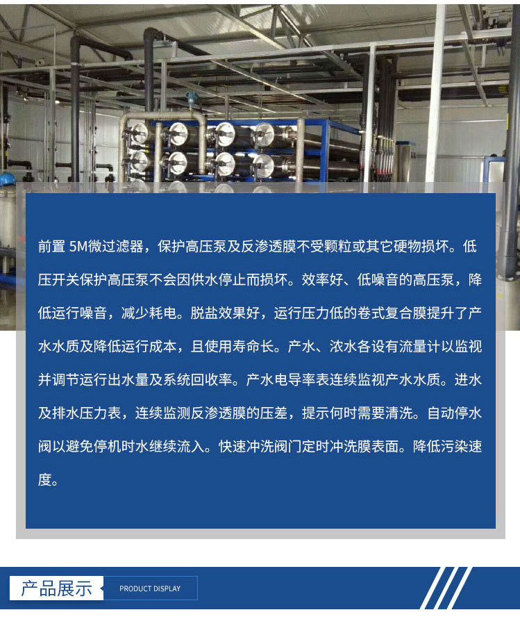 除盐水处理设备除盐水(desalted water),是指利用各种水处理工艺,除去悬浮物、胶体和无机的阳离子、阴离子等水中杂质后,所得到的成品水。除盐水并不意味着水中盐类被全部去除干净,由于技术方面的原因以及制水成本上的考虑,根据不同用途,允许除盐水含有微量杂质。除盐水中杂质越少,水纯度越高。