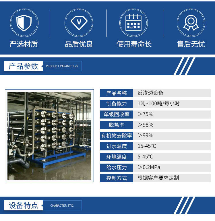 3、 设备连续产水,不需备用交换器,不需另设盐池盐泵和压力容盐器。
